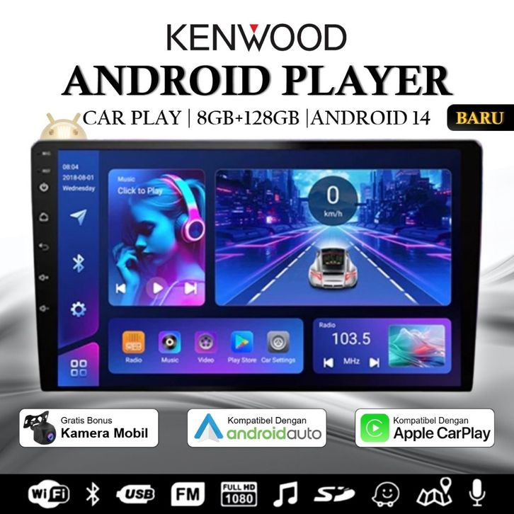 Head Unit Android Kenwood 9/10 Android Car Player 8+128GB Head Unit Mobil Android | Gps | Bluetooth | Wifi | Carplay