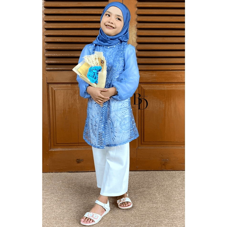 Fiona Outer Brukat Anak Tanggung Perempuan 4-12 Tahun Brokat Organza Payet Kondangan Bridesmaid