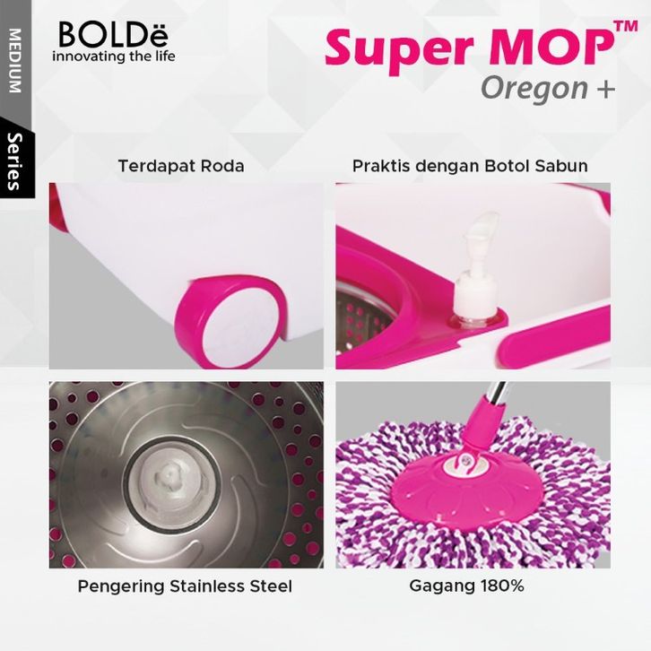 BOLDe Pel Lantai Super Mop Oregon 7L 4 Warna Pengepel Lantai Putar Murah Alat Pembersih Lantai Kain Pel Bolde Ori