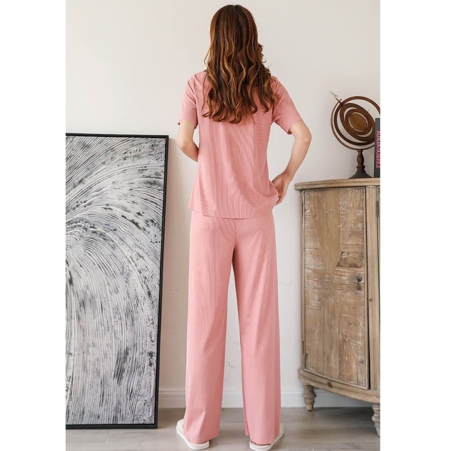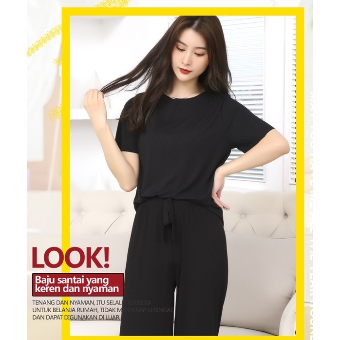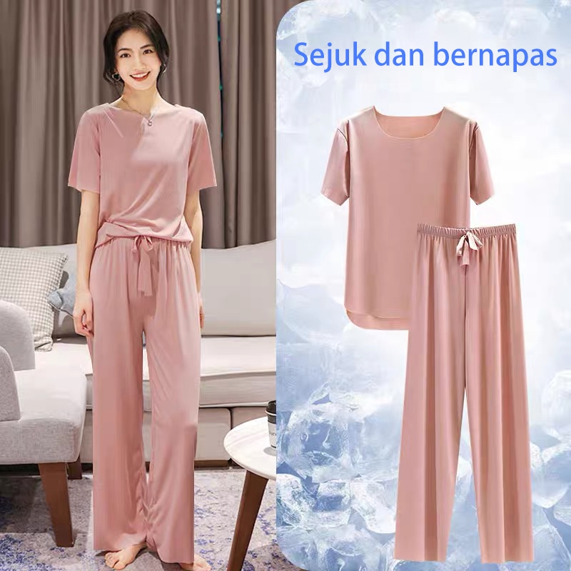 Set Piyama Wanita Polos/Et Piyama Wanita Polos/Pakaian Rumah Longgar Sutra Es/ Dua Potong Pajama Wanita Baju Tidur Wanit