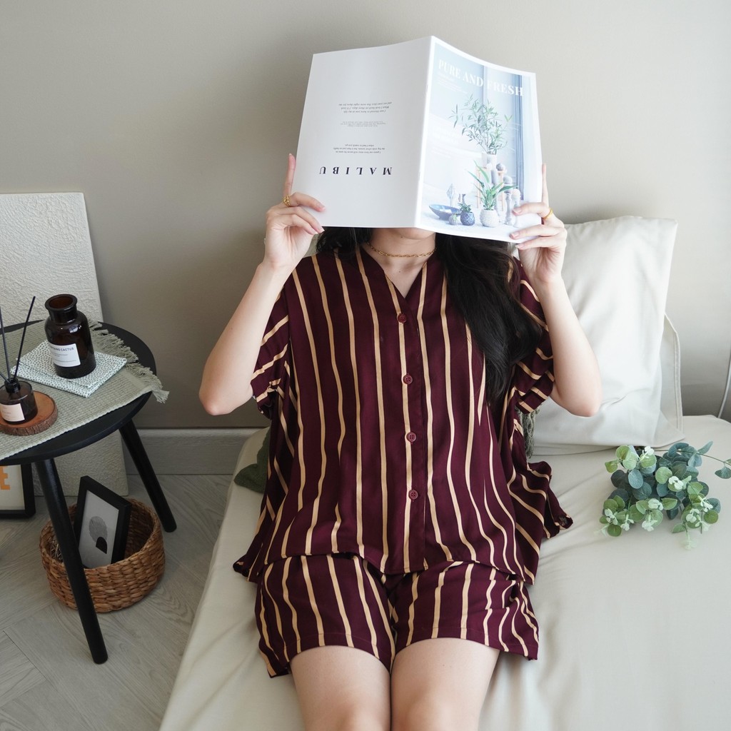 Powysuit Piyama Rayon V Neck Wanita Lengan Pendek dan Setelan Celana Pendek Baju Tidur Rayon Part 1