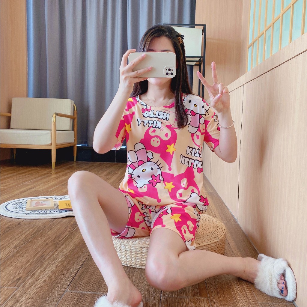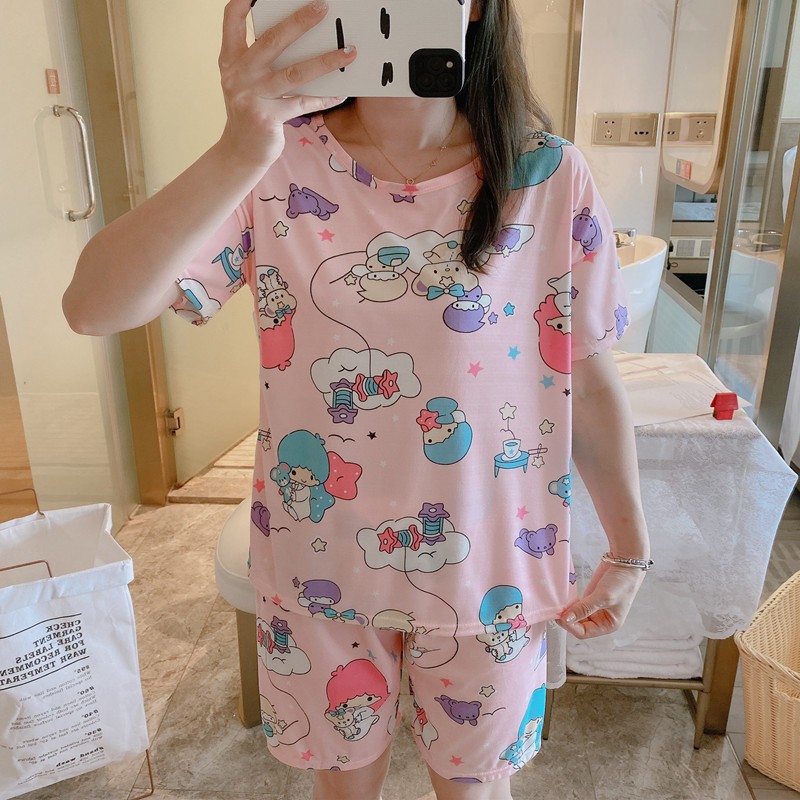 Setelan Baju Tidur Wanita /Baju Tidur Wanita Piyama Size L Kecil /Korea Lengan Pendek Celana Pendek/ Motif Kartun Lucu S
