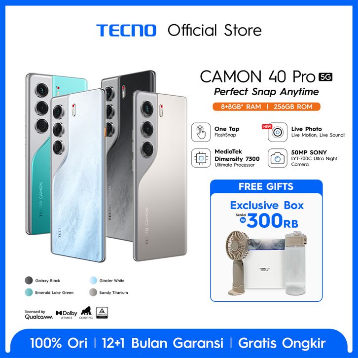 [FLASHSNAP PRO] TECNO CAMON 40 Pro 5G - 8+8GB*/256GB, Mediatek D7300 Ultimate, 6.78” FHD+144HZ 3D Curved