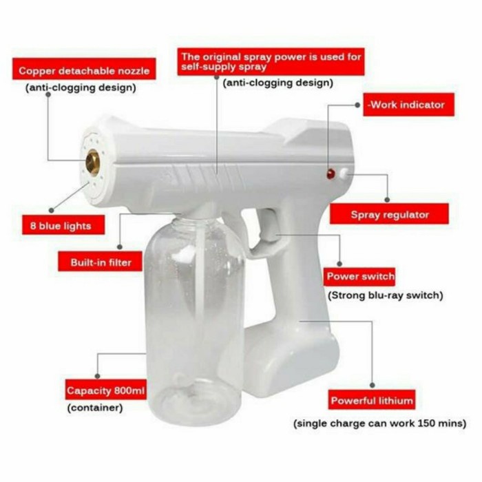 Nano Spray Gun Disinfektan Wireless Protable 800ml UV