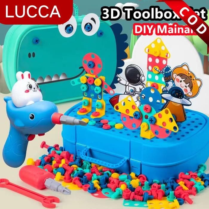 Mainan Anak Tool Box Set 224pcs DIY 3D Kotak Sekrup Bangunan Mainan Edukasi dengan Bor Listrik - Pink