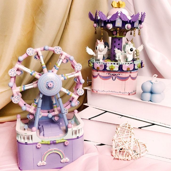 【 Lampu】Kotak Musik Kincir Ria Mainan Brick Balok/DIY Blok Susun Bangunan Lucu Kotak Music/Kotak Musik/Hadiah Kado Ulan