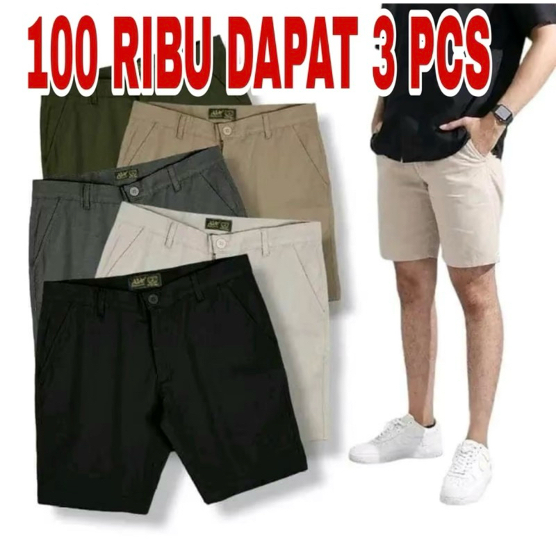 100 Ribu Dapat 3 pcs Celana Cinos pendek Shorht Pants Hitam Abu Mocca Krem