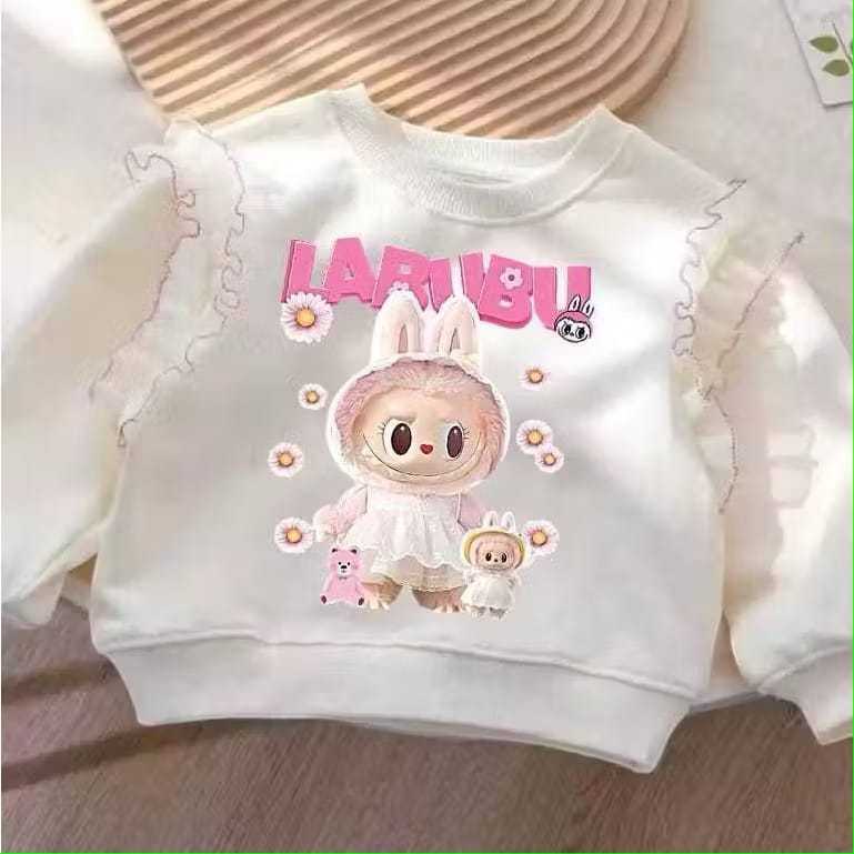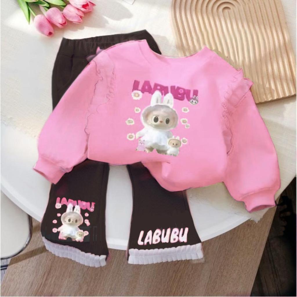 (FLASH SALE)Setelan Anak Perempuan Motif Labubu Dengan Variasi Renda dan Celana Kulot Untuk Anak Usia 1-12 Tahun