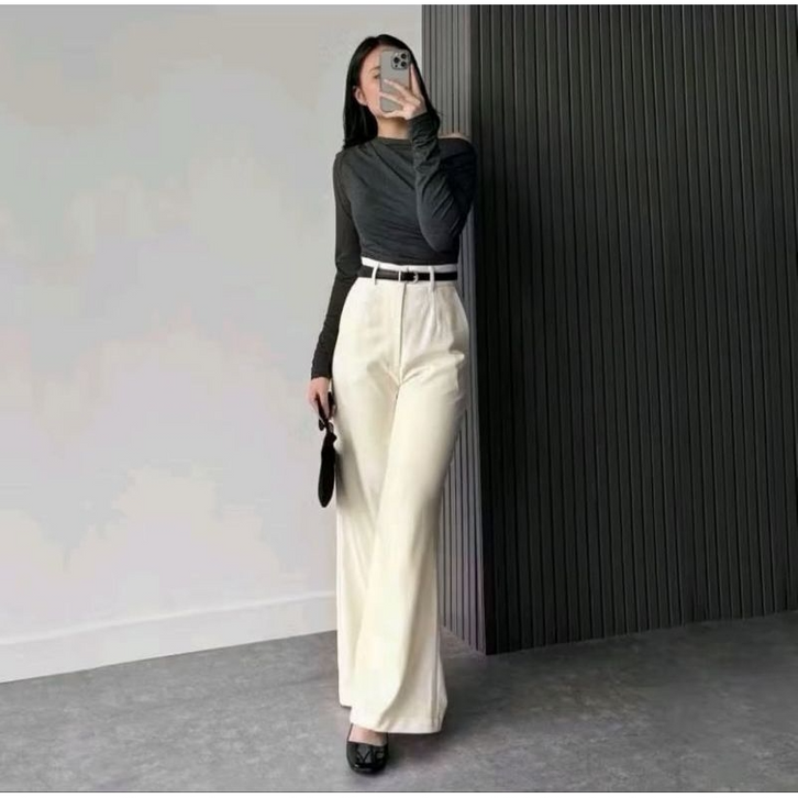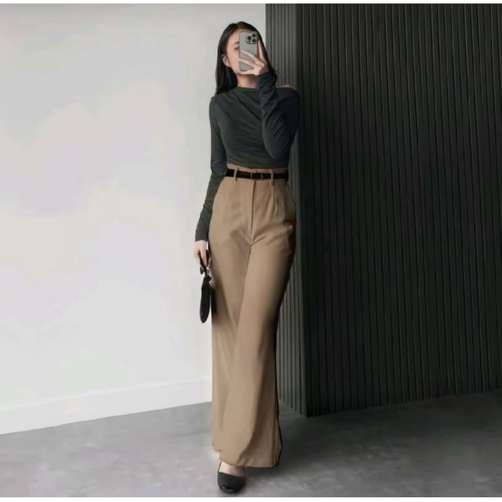 Celana Kulot Wanita Semi Cutbray highwaist Celana Kerja Anti Kusut Etta Pants Best Seller