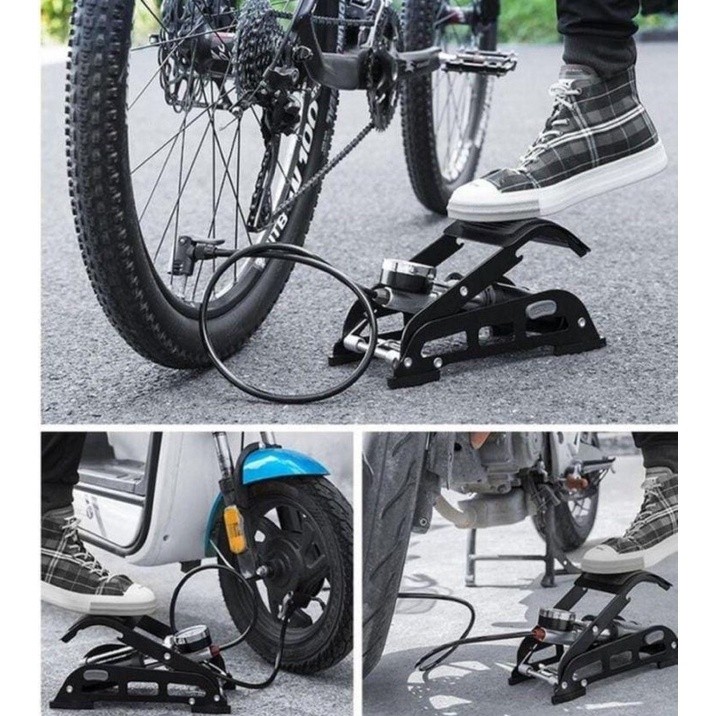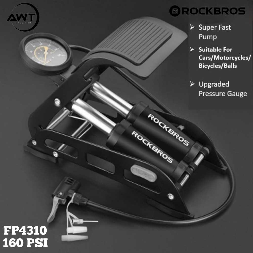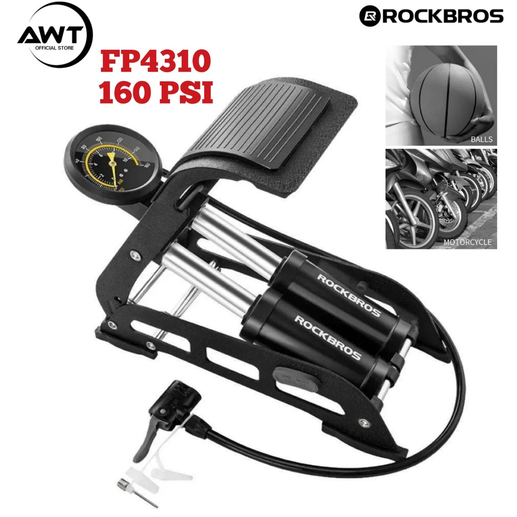Pompa Ban Sepeda Motor Injak FP4310S Pump Mobil Double Silinder ROCKBROS 160 psi Pentil Besar Kecil