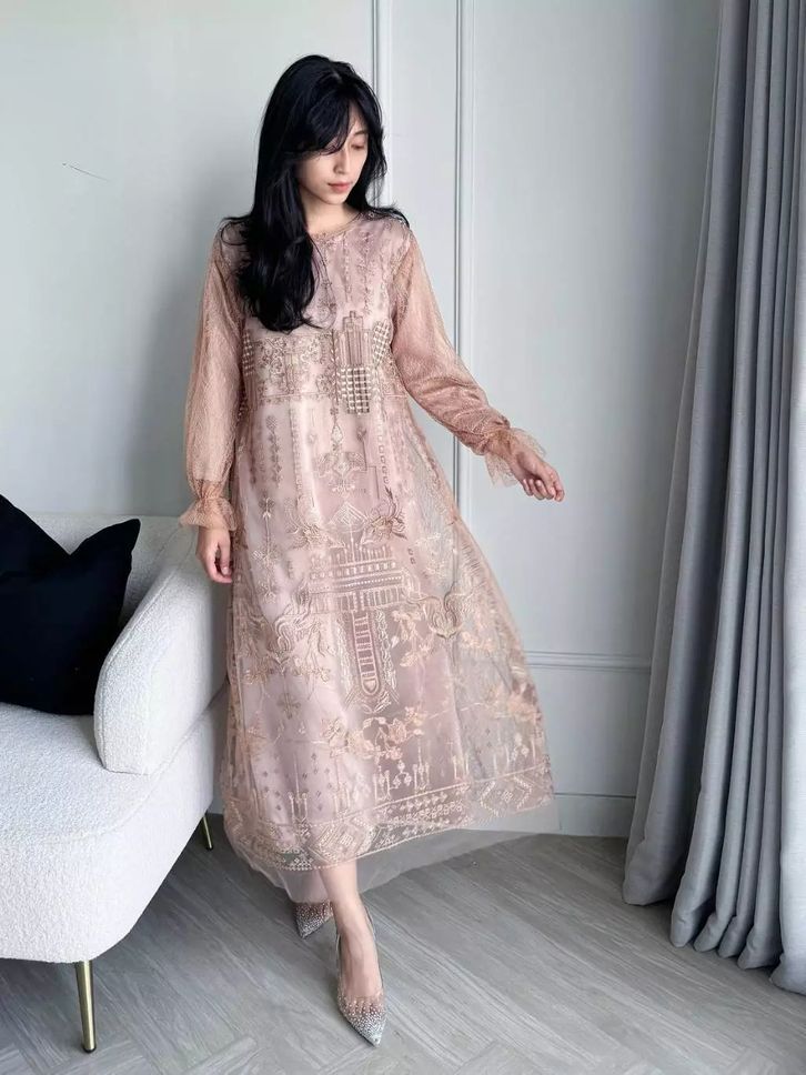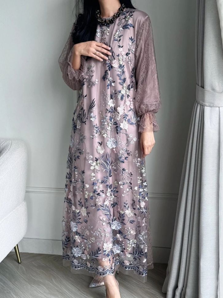 new - rora dress silk + brukat chantily kondangan gamis brukat terbaru gaun kondangan muslimah dress raya collection
