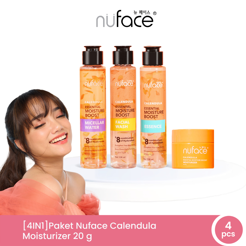 4in1 Nuface Calendula Essential Moisture Boost Series Package All Skin Micellar Water, Facial Wash, Essence 108ml + Moisturizer 20gr