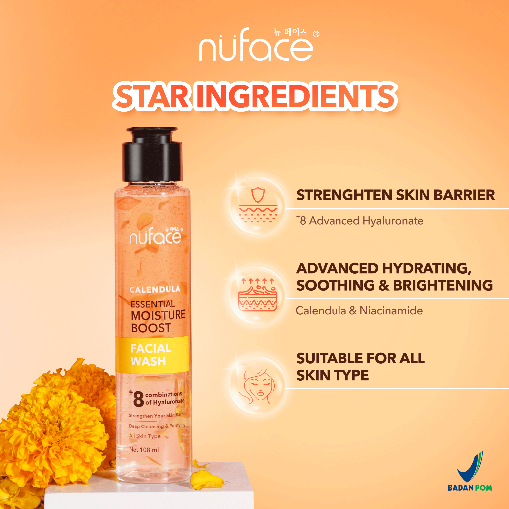 Nuface 4in1 Calendula Essential Moisture Boost Package Micellar Water, Facial Wash, Essence 108ml + Moisturizer 7gr