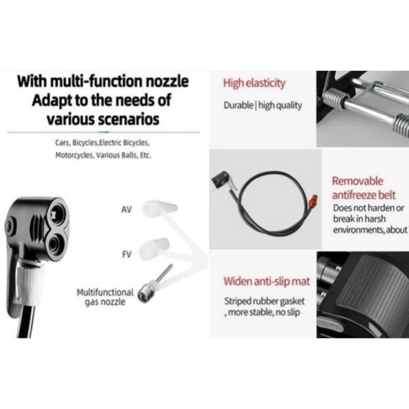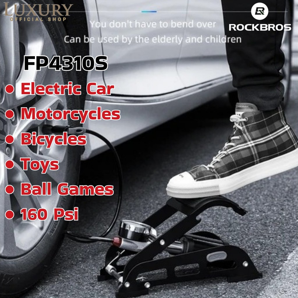 Pompa Sepeda Motor Injak Ban Sepeda Mobil Bola Portable ROCKBROS FP4310S Double Silinder 160psi