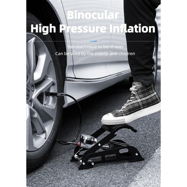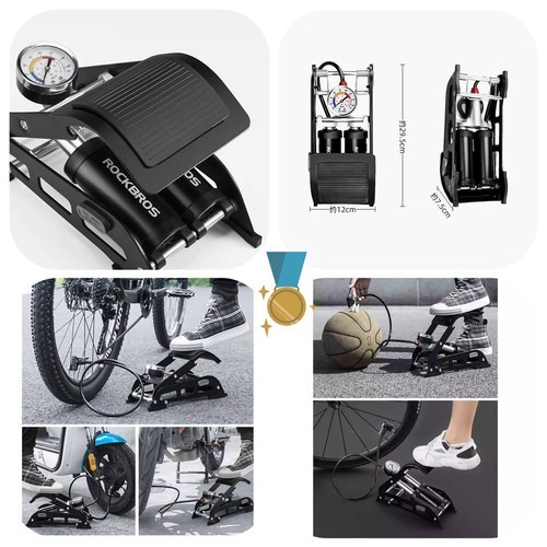 ROCKBROS Pompa Ban Sepeda Motor Mobil Injak FP4310S Double Silinder Rockbros 160psi Bola Basket Kaki