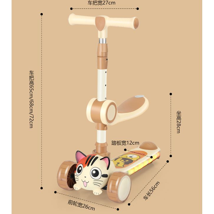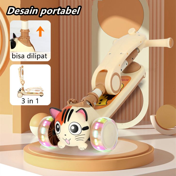 Skuter Anak-anak 3 Roda Skuter dengan Roda Flash Skuter Tendangan untuk Anak 2-12 Tahun Tinggi Disesuaikan Skuter Anak