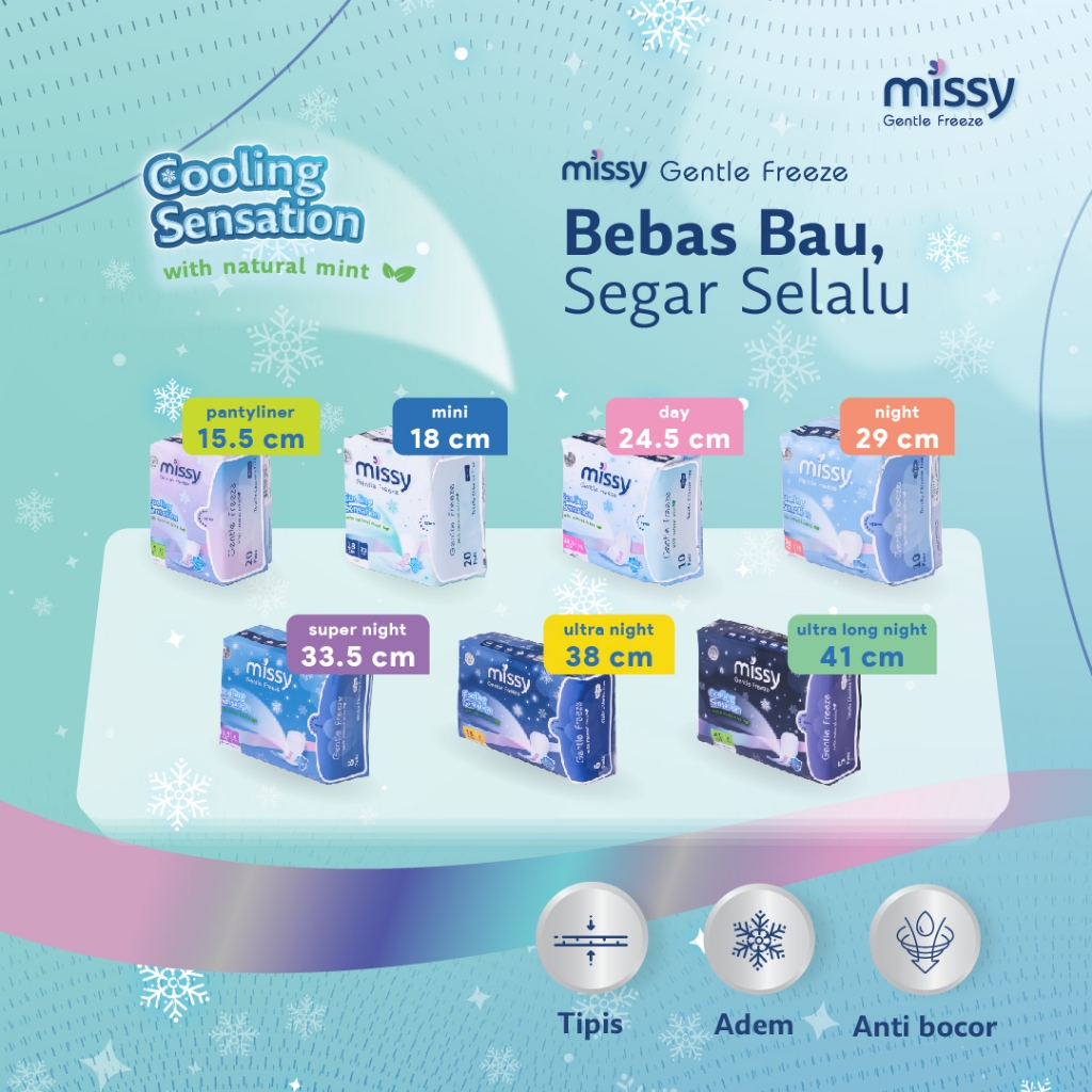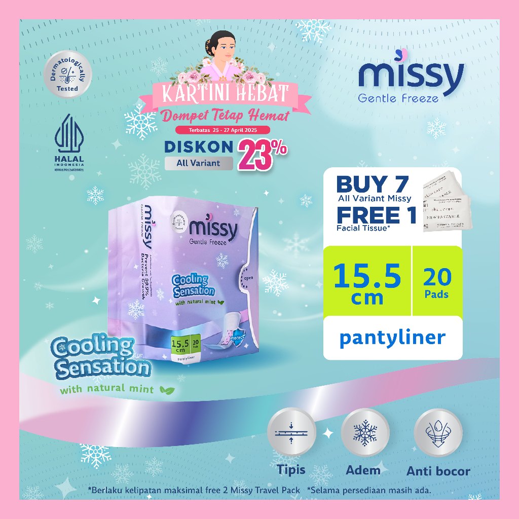 Pembalut MISSY GENTLE FREEZE PANTYLINER Pembalut dan Pantyliner HERBAL Kesehatan Wanita Non Wings 155mm 20 pads Perawatan Miss V Menstrual Cup Tampon Menstruasi Anti Jamur Virus Anti Bocor
