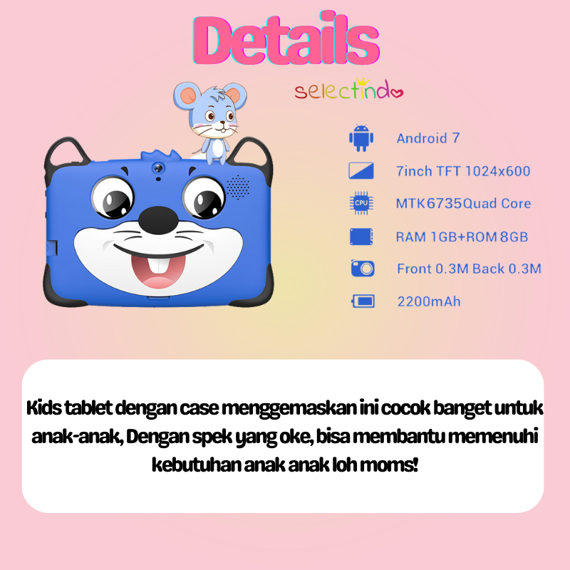 TABLET ANAK ANDROID BELAJAR MURAH REAL MEMORY KIDS TABLET SMARTY KITTY TABLET ANAK TABLET PC TABLET ANDROID WIFI SAJA