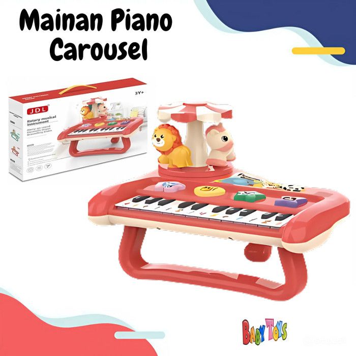 BabyToys Mainan Piano Anak Animal Farm Musik Rotary Carousel Berputar Kado Ulang Tahun Bayi Balita