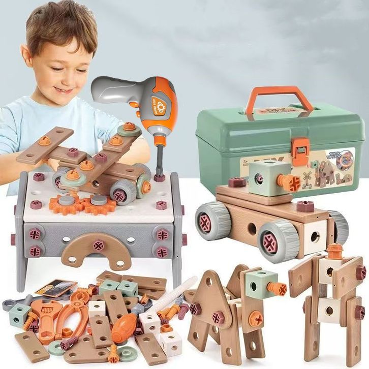 Adida Toys 147Pcs Mainan Toolbox Set 3D DIY Brick Baut Puzzle Koper Sekrup Pakit Bongkar Mainan