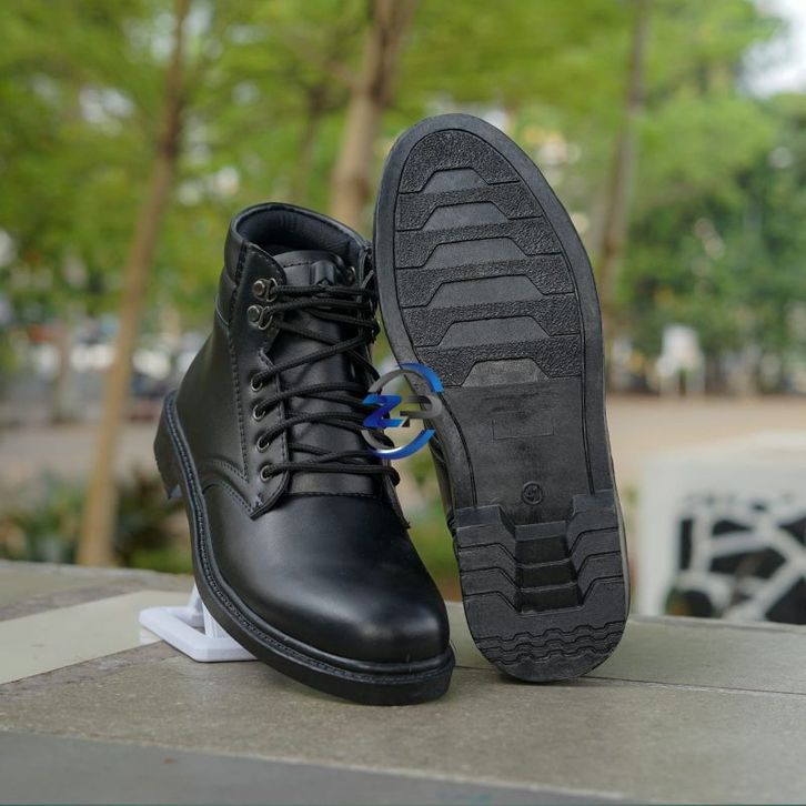 SEPATU PDH PRIA tali rel seleting polri tni polisi security satpam sepatu dinas harian intansi hitam doff/kilap