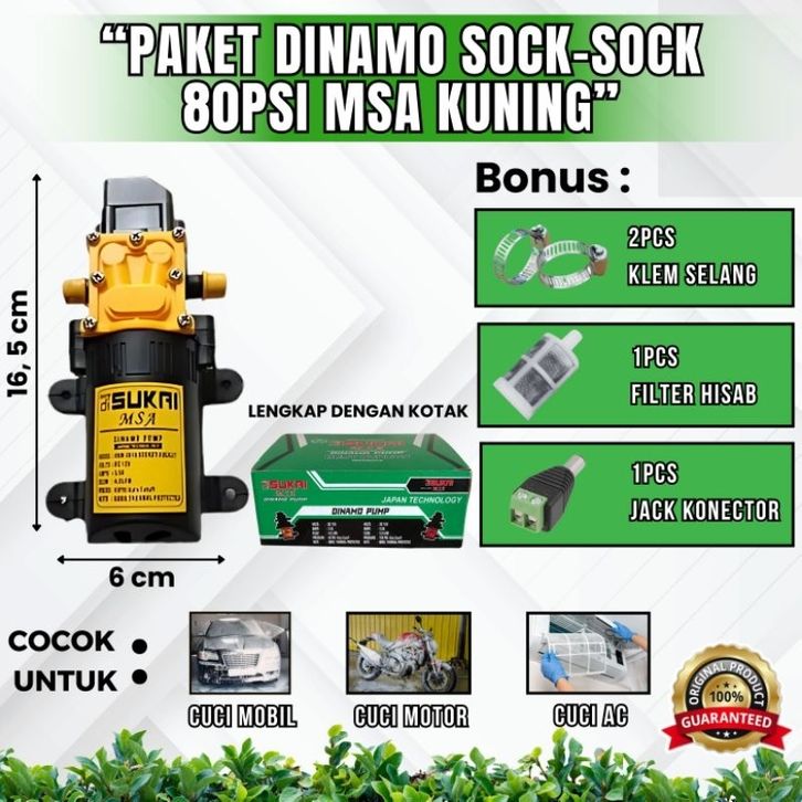 PAKET A DINAMO POMPA SOCK-SOCK 80PSI MSA KUNING (dinamo sprayer cuci motor mobil ac bergaransi)