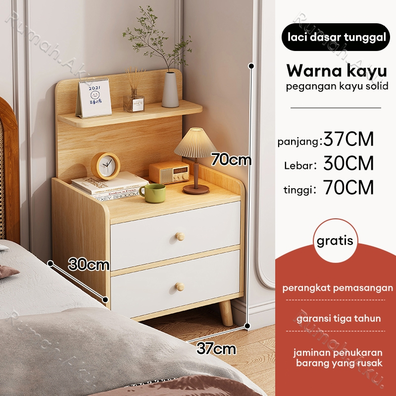 RA Meja Nakas 2 Laci Nakas Kayu Bedside Table Lemari Penyimpanan Nakas Minimalis 37*30*70CM