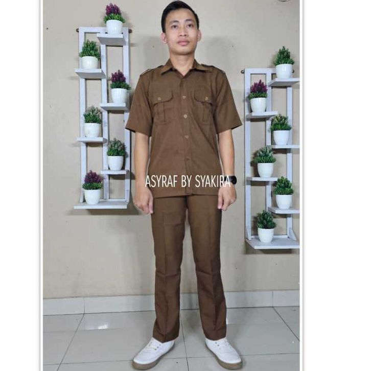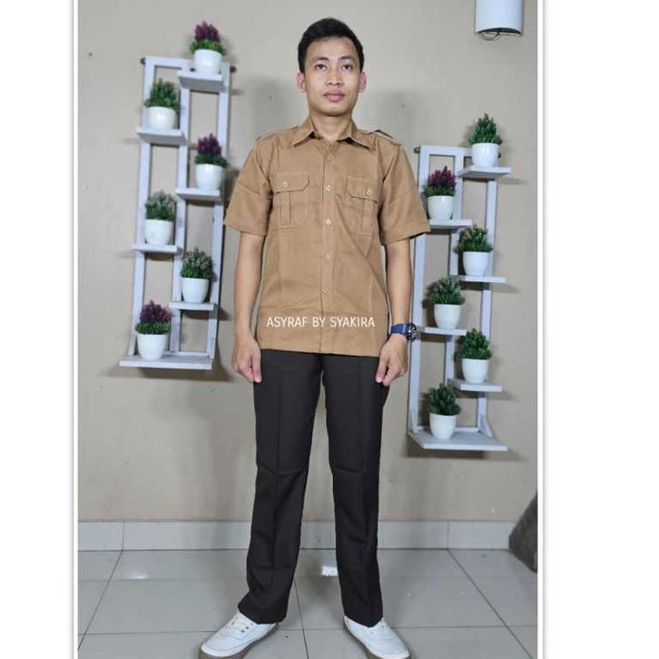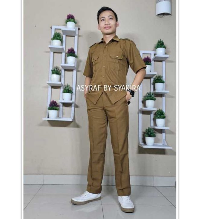 Seragam kerja pria pdh pria terbaru kekinian modern reguler fit tangan pendek semi wool asyraf pemda