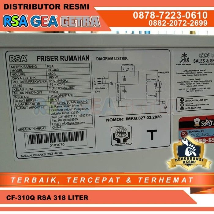 freezer box RSA Freezer box CF 310Q - 310 Liter Putih