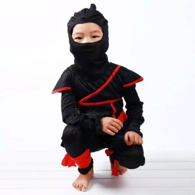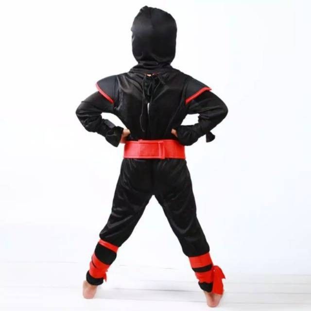 KOSTUM Cosplay NINJA 01 Hitam Strip Merah Baju Halloween Karakter Anak - XL