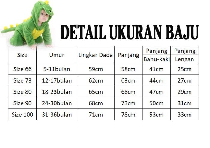 Baju Kostum Dinosaur Dino Anak Bayi Karakter Hewan Animal onesie - New Dino Hijau 70