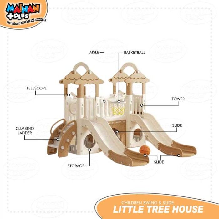 Perosotan Prosotan Anak Little Tree House Playhouse Basketball Playground 2 Slide - Cokelat