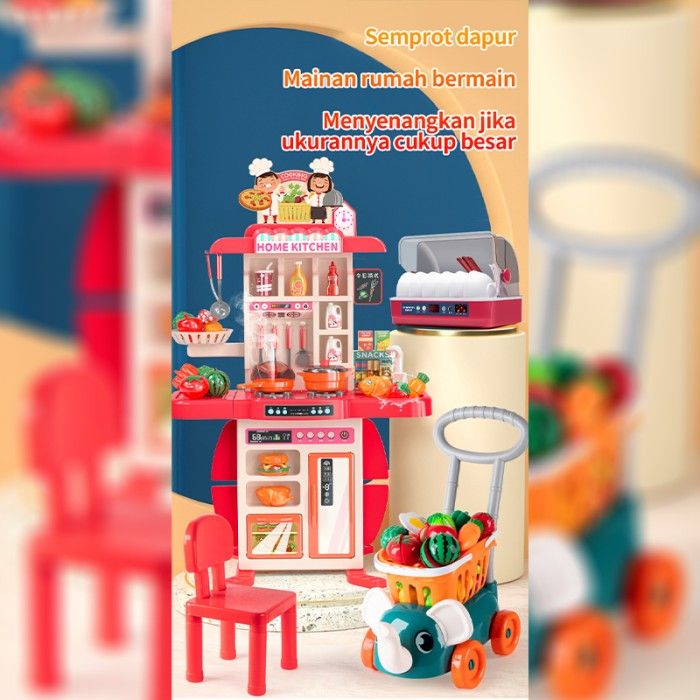 Mainan Masak Masakan 68pcs Set Mainan Dapur Anak Bermain Rumah Mainan Cooking Set Mainan Anak Perempuan Mainan meja mak