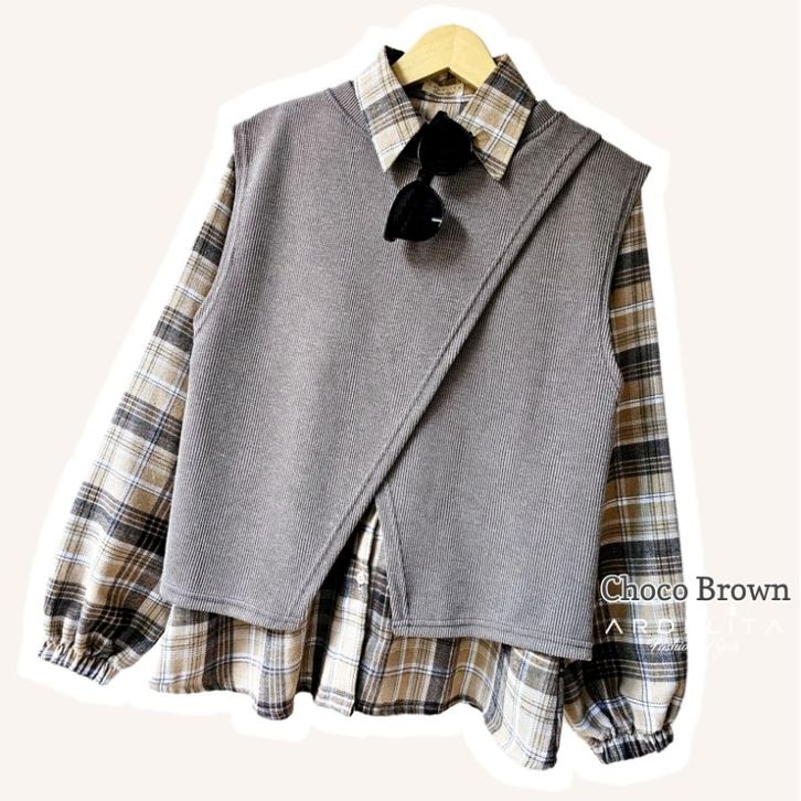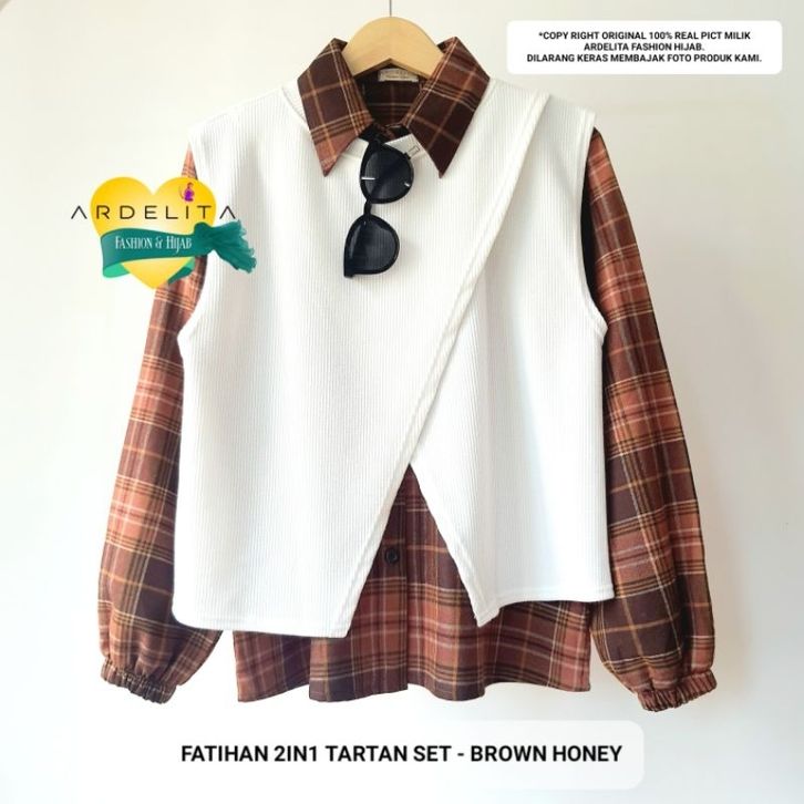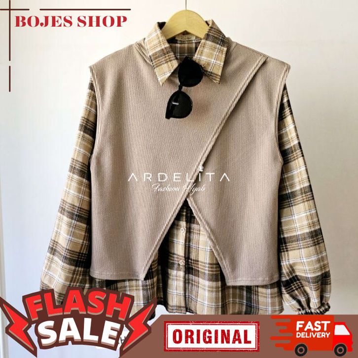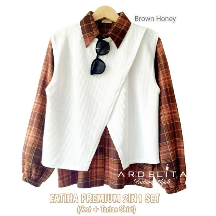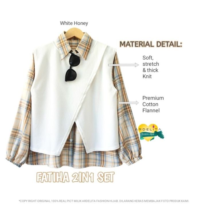 FATIHA 2IN1 SET SETELAN BAJU KOREAN STYLE KEKINIAN SET VEST FLANNEL 2IN1 ORIGINAL BY ARDELITA FASHION HIJAB