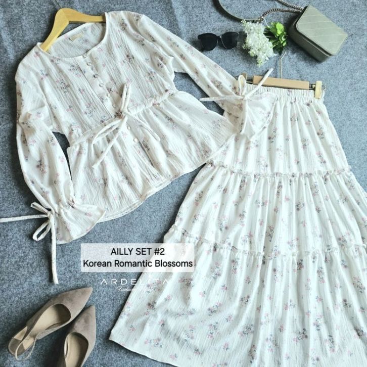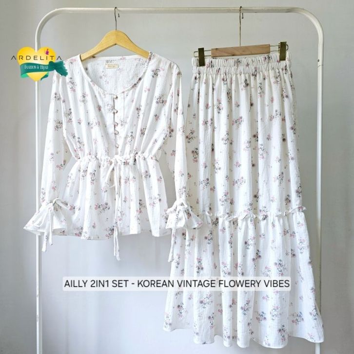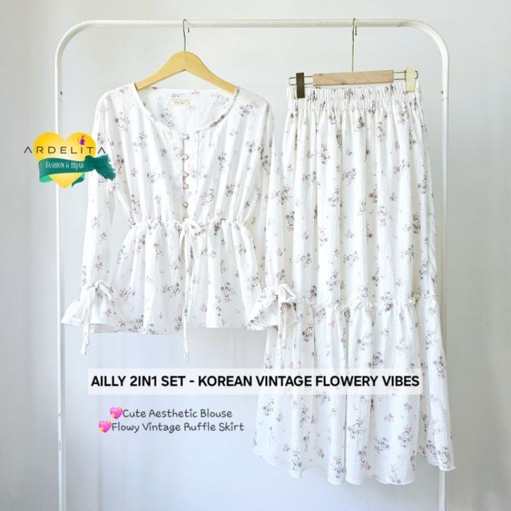 OOTD WANITA KEKINIAN Aestethic ala Korea Baju Setelan Rok Wanita Kekinian Coquette VintageRuffle ONE SET WANITA KEKINIAN