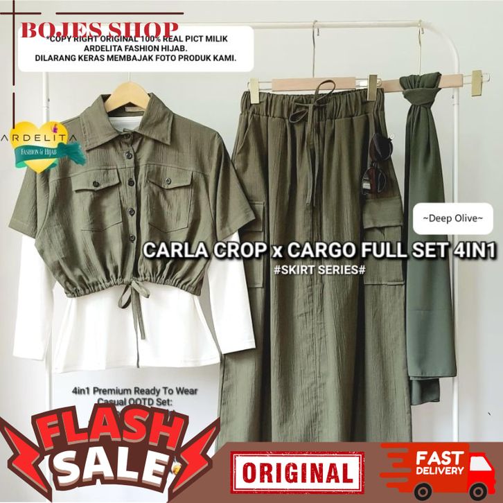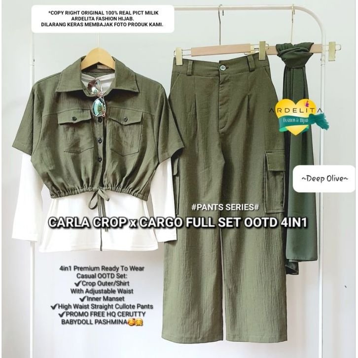 [FREE JILBAB] 4IN1 CARLA CROP x CARGO FULL SET OOTD SETROK WANITA KEKINIAN SETELAN BAJU REMAJA DEWASA OUTFIT KEREN