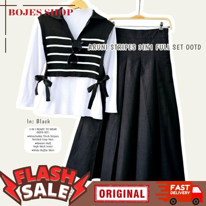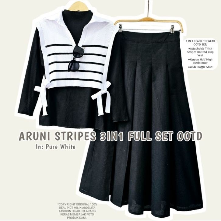 ARDELITA - ARUNI STRIPES 3IN1 FULL SET OOTD KOREAN STYLE FOR HIJAB - BAJU SETELAN ROK WANITA REMAJA DEWASA TERBARU