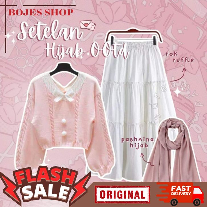 dreamyootd 3in1 Set 136 - Setalan Hijab wanita kekinian Kawai Vintage baju one set hijab ootd one set rok korean style