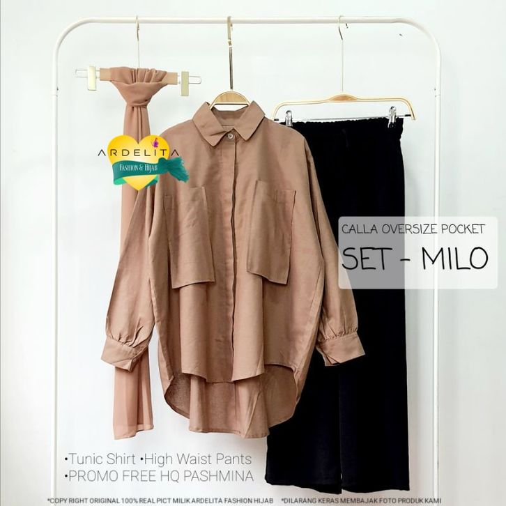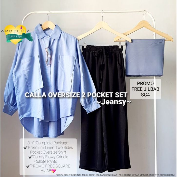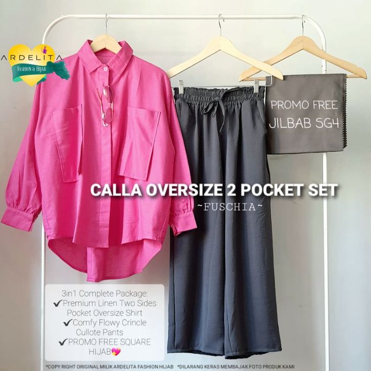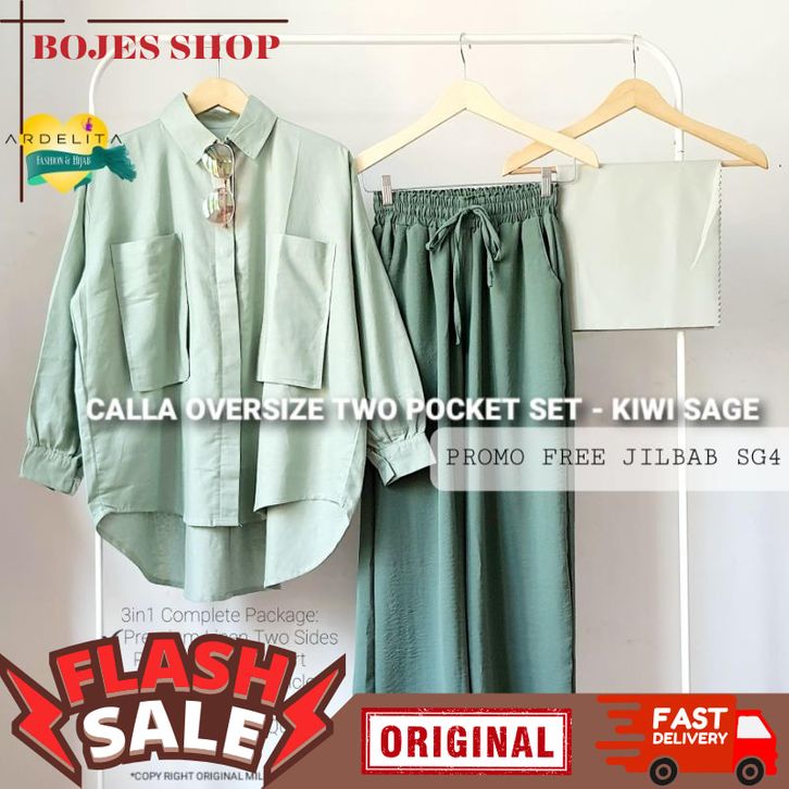 CALLA OVERSIZE POCKET SET SAGE / BAJU SETELAN WANITA KEKINIAN VIRAL / SETCEL / SET OOTD HIJAB KEREN TRENDY / SELEgr