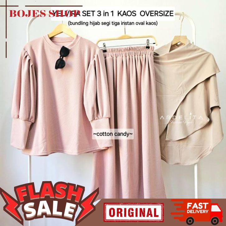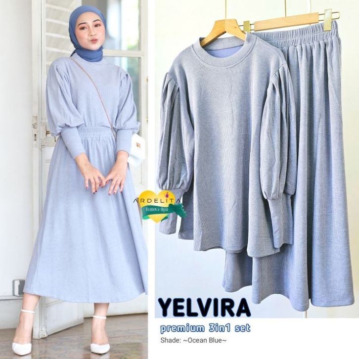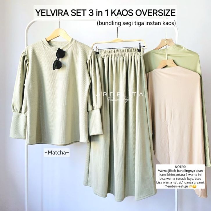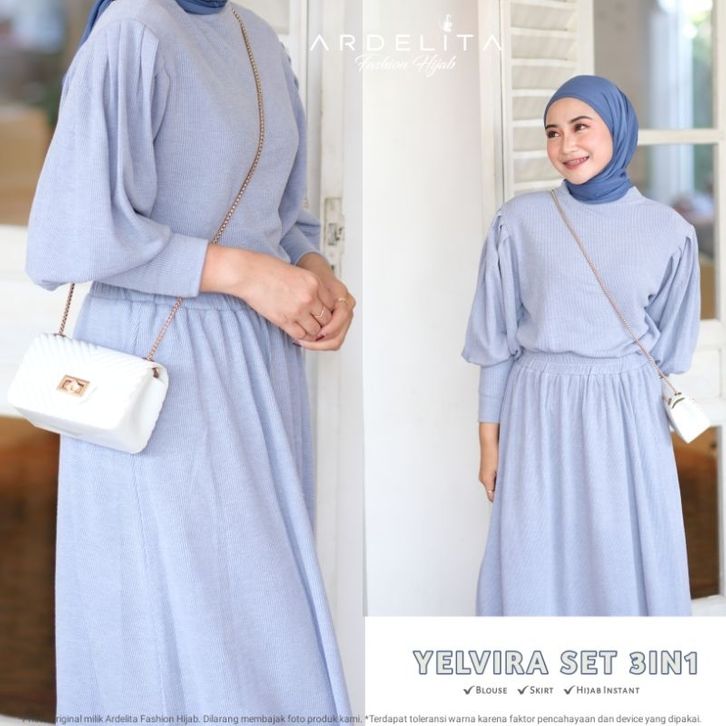 ARDELITA - Yelvira Set Rok 3in1 Premium Kaos Special Bundling Hijab Sg3 Instan Oval - Setelan Kaos Knit berkualitas
