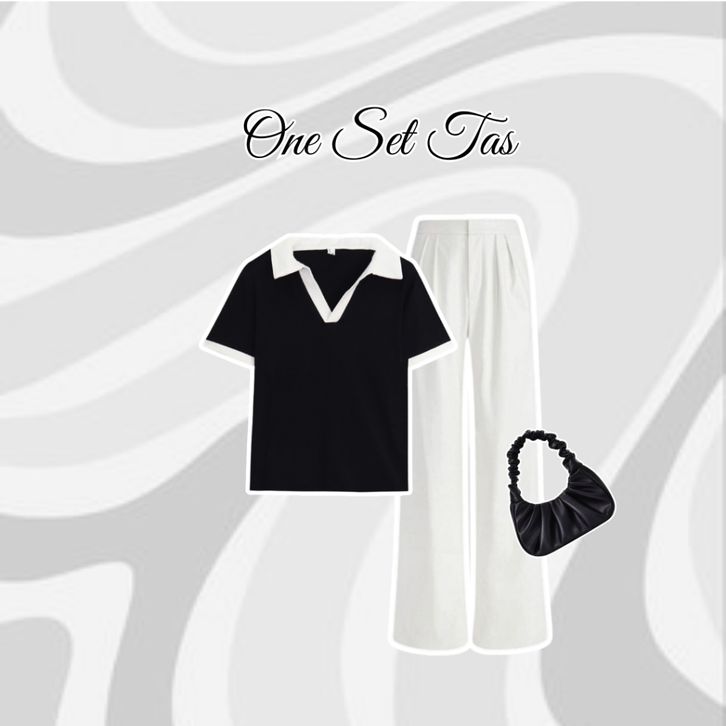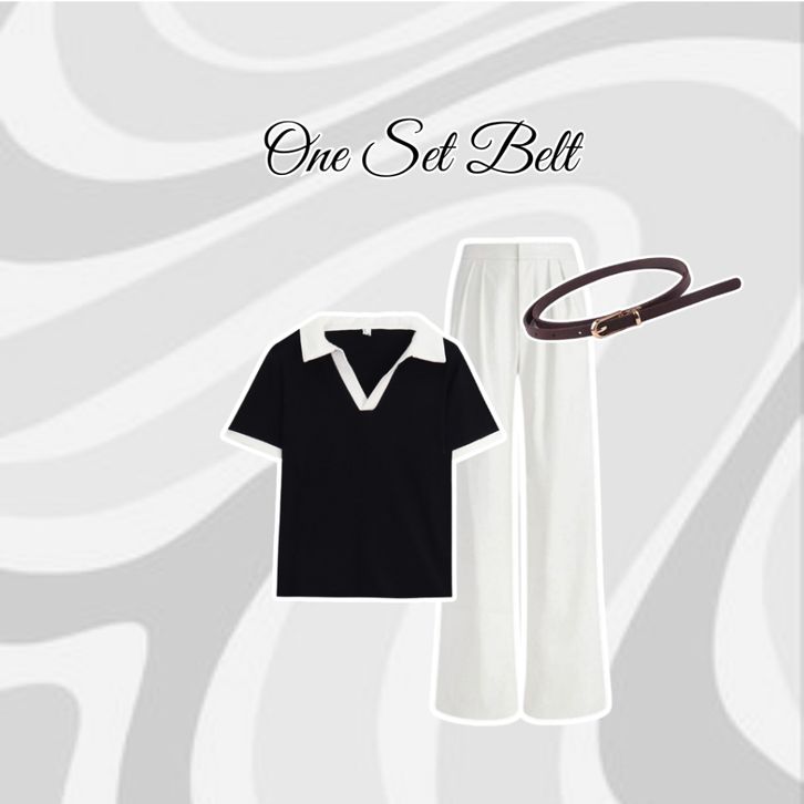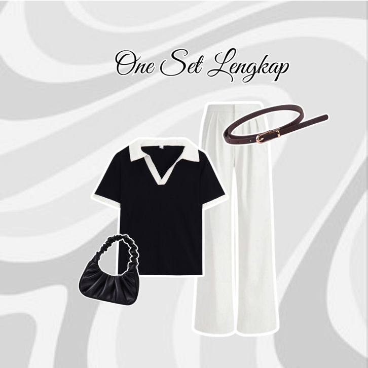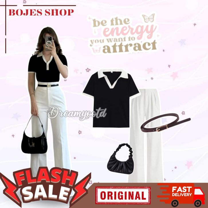 DreamyOOTD - One Set Korean Style Wanita Remaja Kekinian – Kaos Lengan Pendek Celana Panjang Tas Selempang Belt Stylish