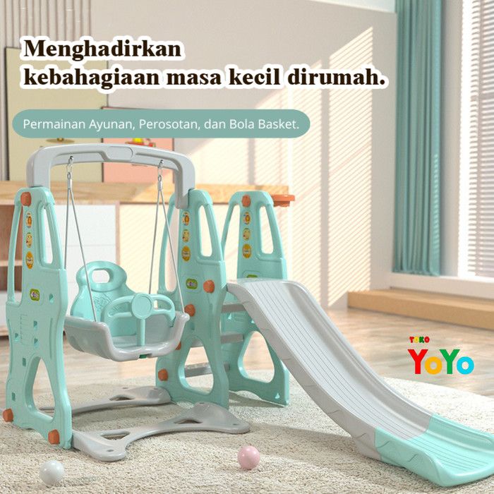 Mainan Perosotan Ayunan Basket Anak 3 in 1 Lengkap Premium PlayGround Luar Ru*ang Anak - 3in1_Biru_30212