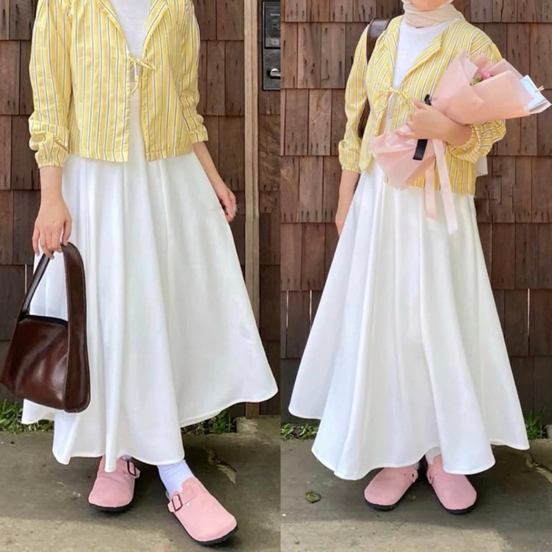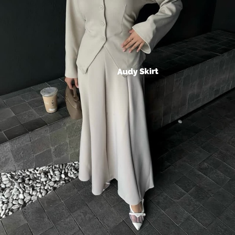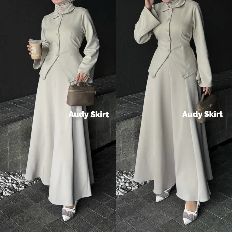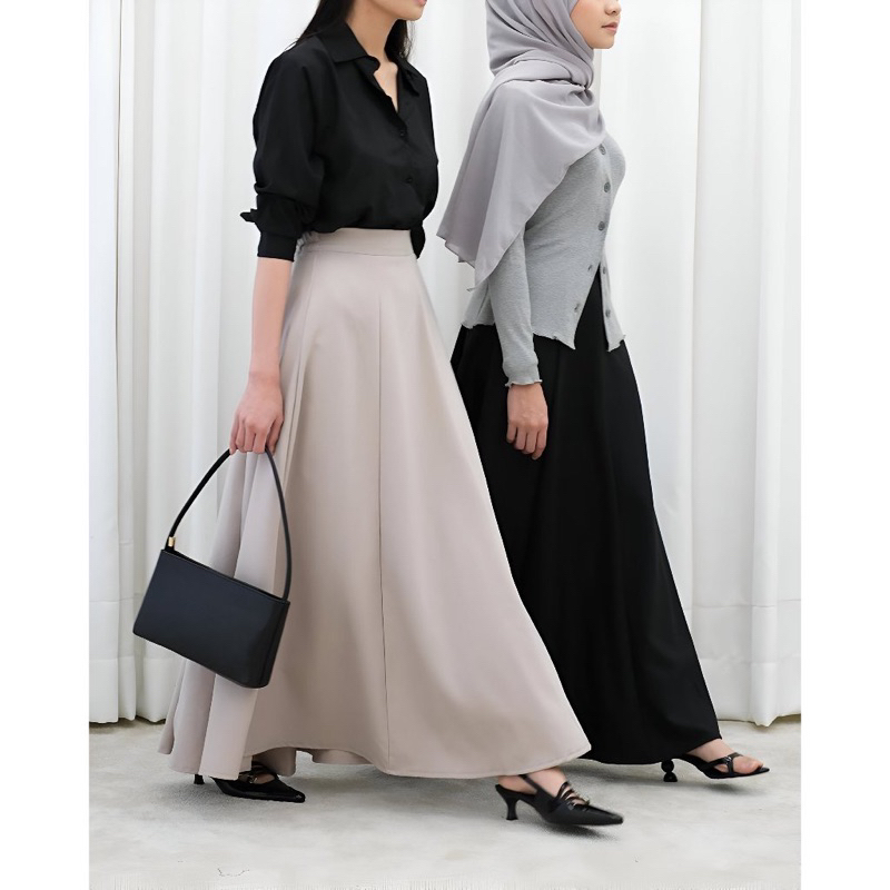 (FLASH SALE)Audy Skirt - Korean Loose Maxi Skirt Rok Wanita Anti Kusut Polyester - Rok Flare Wanita - Rok Basic Polos