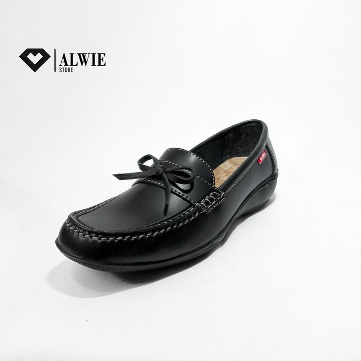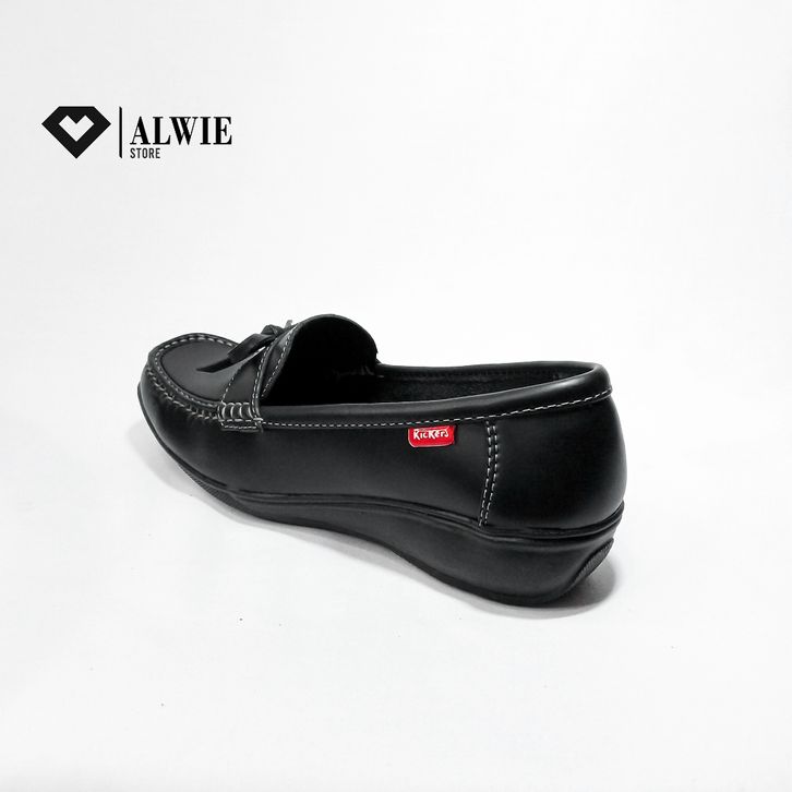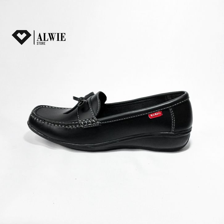 Sepatu Pantofel Wanita Slip-On QG7015 | KICKERS | Hitam Pita