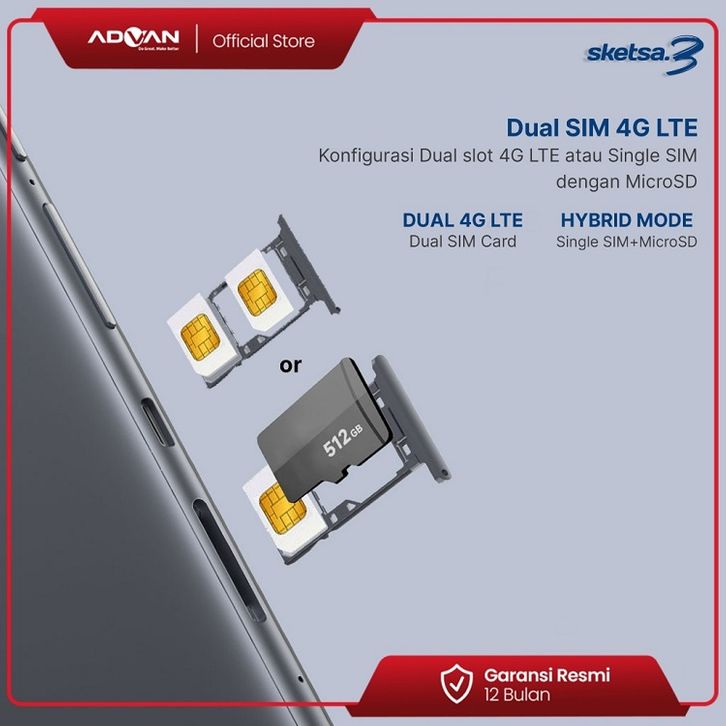 FREE KEYBOARD + PEN ADVAN Tab Sketsa 3 Dual Sim Card 4G LTE Layar 10.1” HD IPS 128GB+RAM 6GB Tiger T606 Android 13