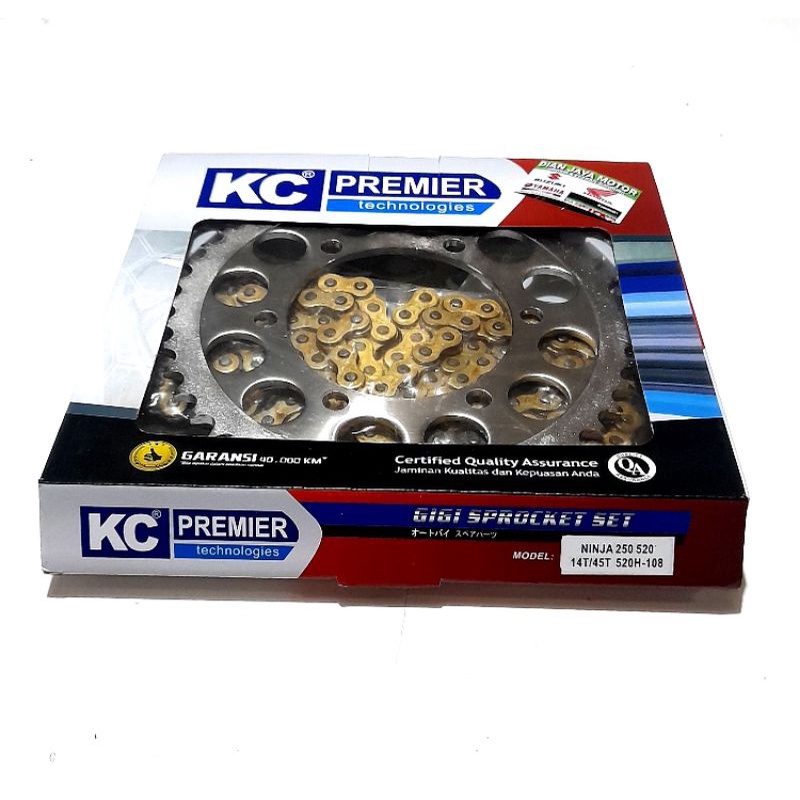 (KCP) Girset Kc Premier Kawasaki Ninja Mono Ninja 4T 250 14T/45T 520H-108 Rante Gold Type Sss Baja Asli Kuat Girpaket G