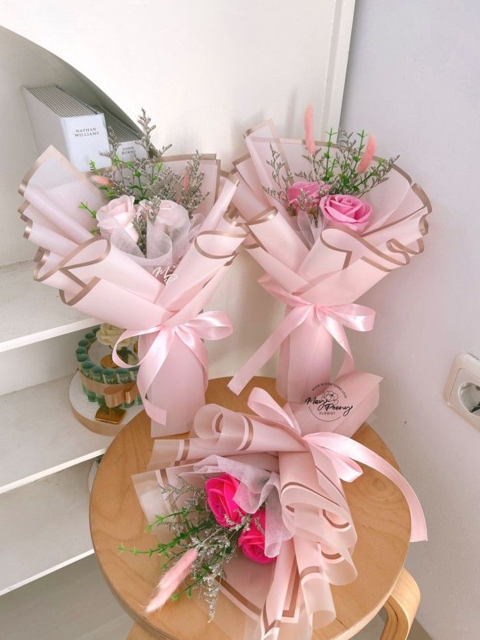 TWIN SOAP FLOWER BOUQUET - BUKET BUNGA SABUN 2 TANGKAI HADIAH ULTAH - Red
