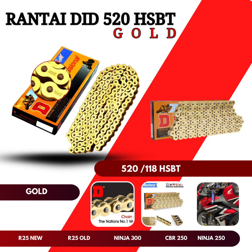 Rantai Gold 520H HSBT Rantai Motor Gold 520 HD Rantai Motor R25 MT25 Z250 Ninja250 Tiger Ninja 250 FI