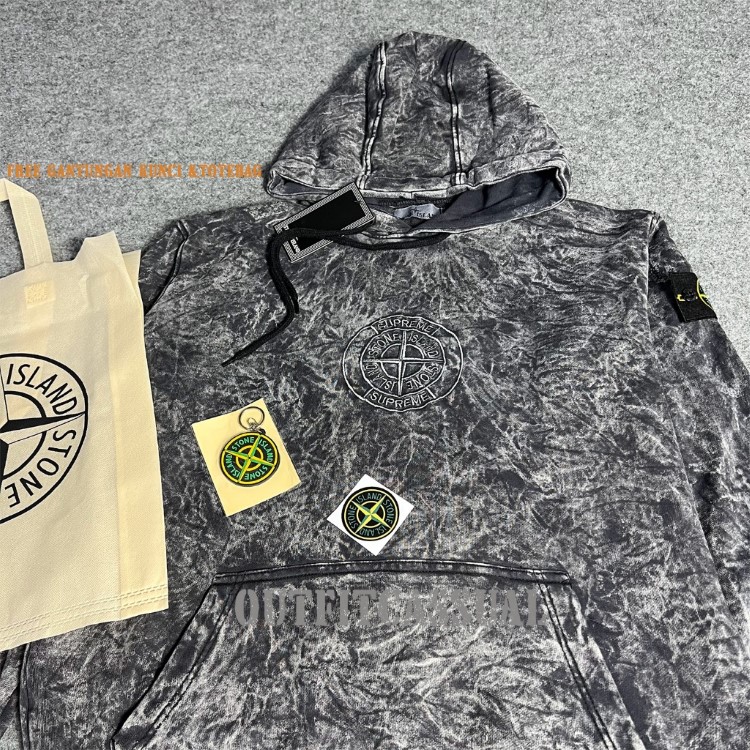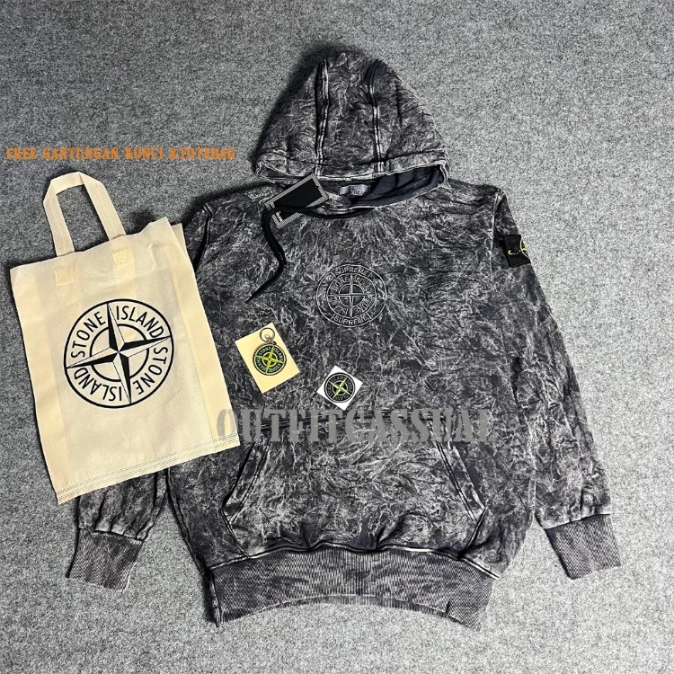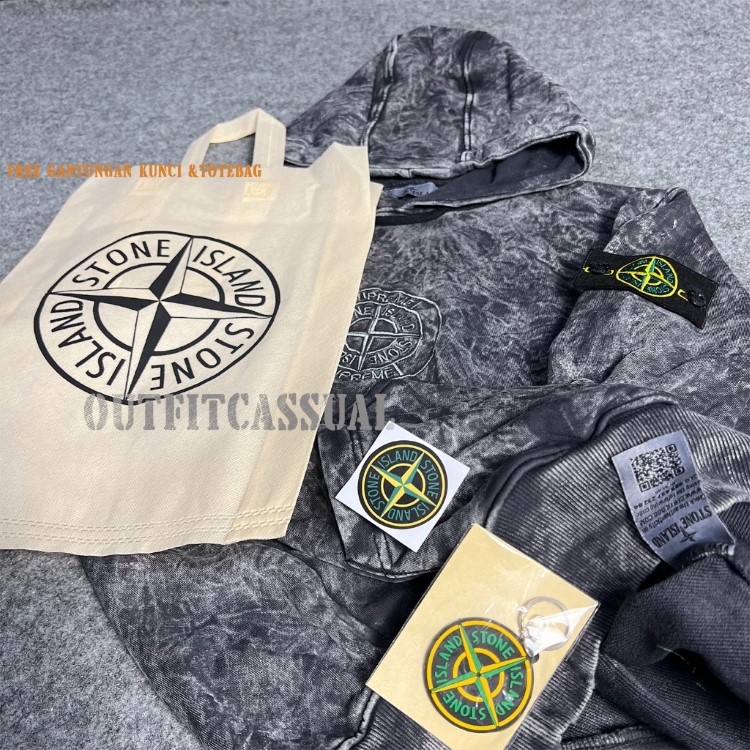 JAKET HOODIE WASHED STONE ISLAND BORDIR FULL LABLE AND TAGG FREE GANTUNGAN KUNCI DAN TOTEBAGG TERBARU MURAH TERLARIS