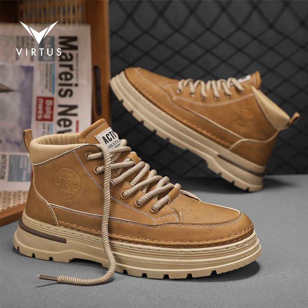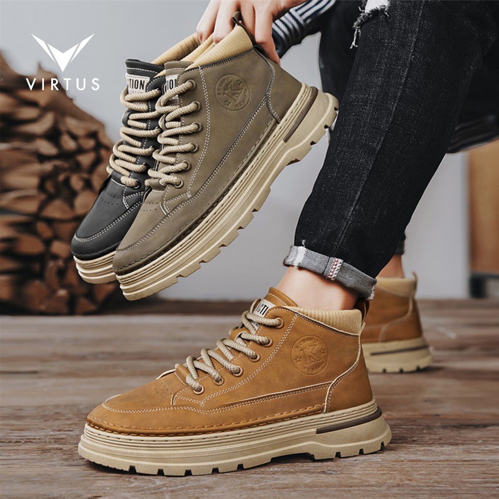 VIRTUS Wear 39 - 44 VINCENZO - Sepatu Sneakers Boots Gunung Pria Kulit Casual Shoes Lari Tali Casual